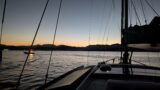 三石港を4:00に出航。襟裳岬を回って十勝港に16:30到着。えりも岬港に行く予定でしたが、風もよく潮もよかったので20海里先の十勝港に変更しました。襟裳岬まではほぼ無風で連れ潮0.5kts、湖のような海上を快適に機走。襟裳岬を回ってから7〜9m/sのクオーターリー(後方斜めからの風)で気持ちのいいセーリング。その後、風が15m/sまで上がりウェザーヘルムが強く舵が効かないので必死のセールダウン。その後は風が落ちて生温かい風の中、機走で港までたどり着きました。70海里、12時間半の目まぐるしい展開の航海となりました。明日は大津港に向かいます。