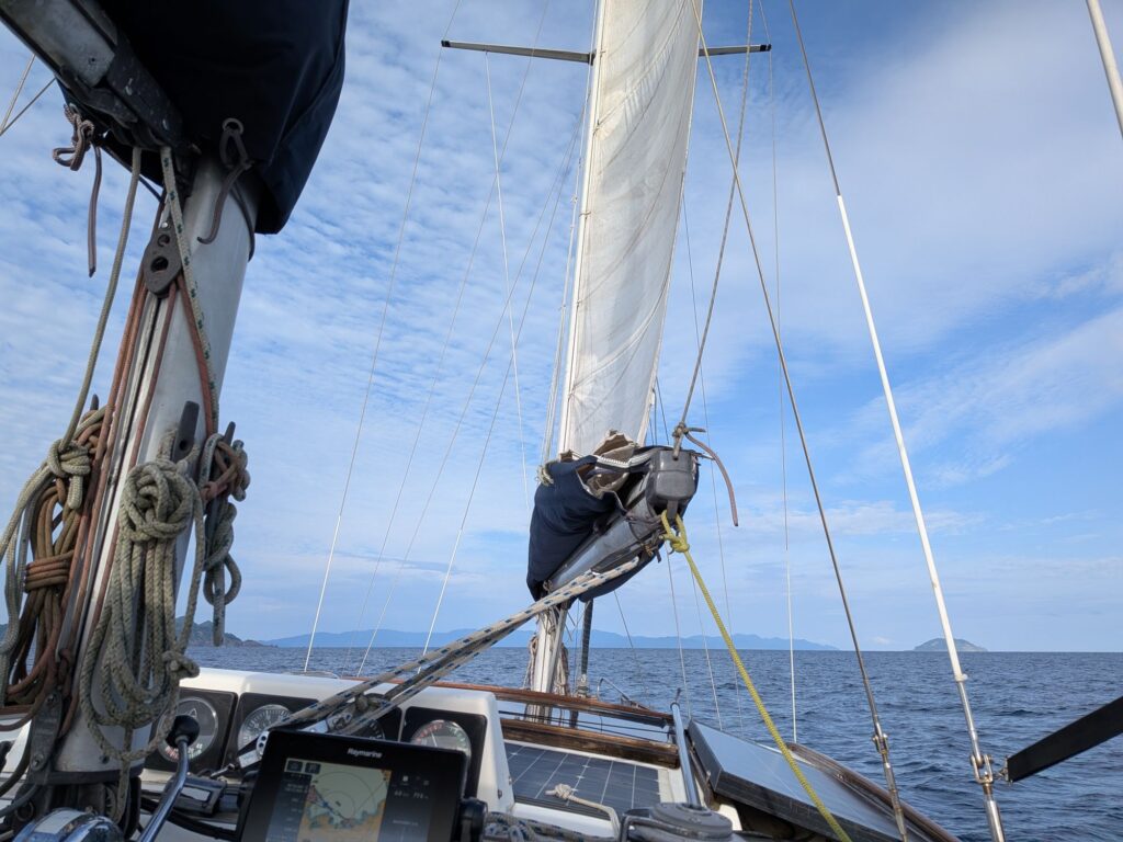 3週間ぶりにクルージングを再開しました。小浜港を6:00に出航。丹後半島を回り込んで間人(たいざ)港に13:00に到着。西風5〜6m/s、39海里7時間の航海でした。季節が変わって涼しくて快適でした。明日は鳥取港に向かいます。