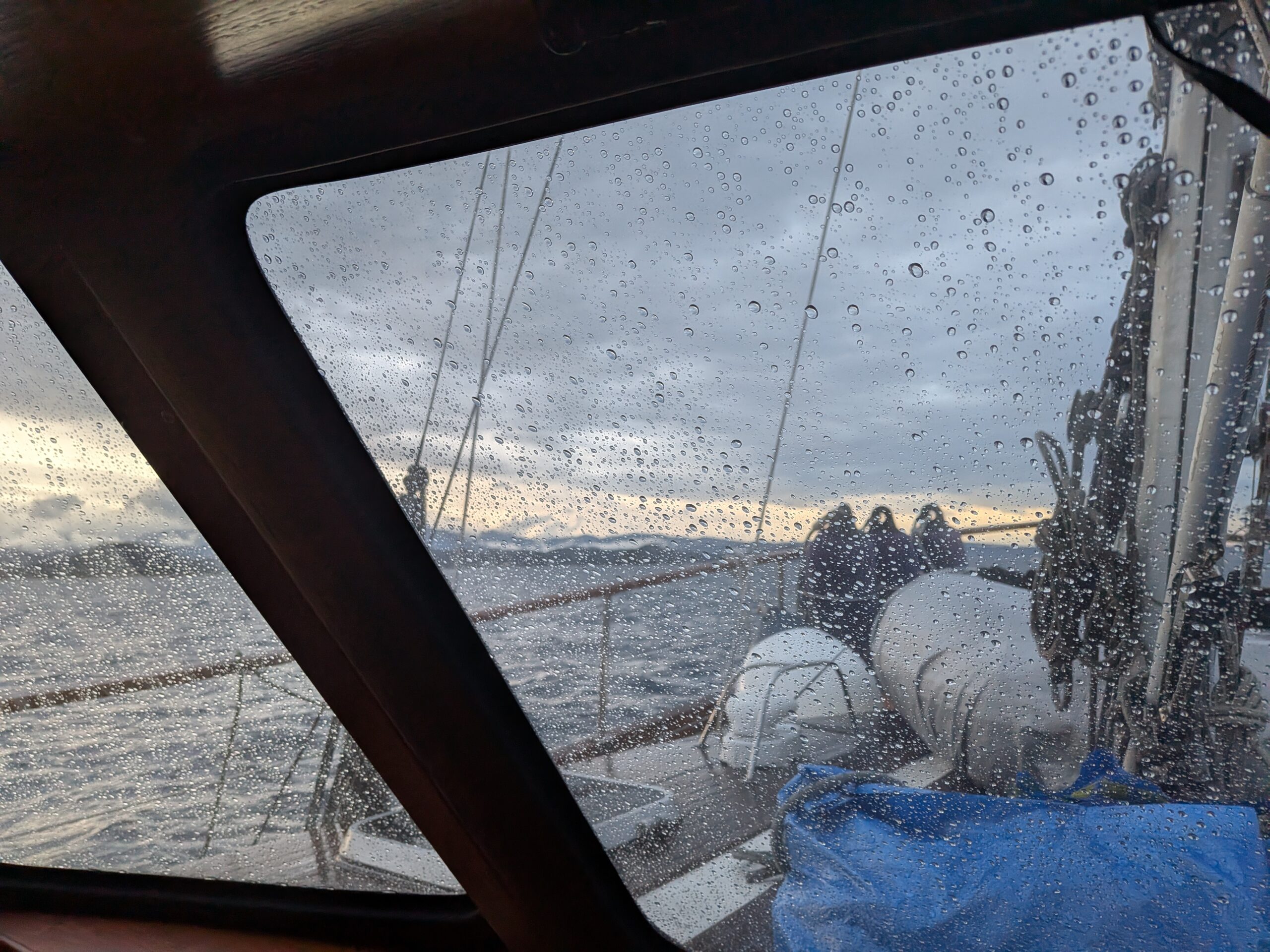 小雨の中、鳥取港を6:15に出航、海岸線に沿って航行して境港公共マリーナに向いました。出航直後は南風10m/sオーバーの追い風でしたか陸近くで波はなく快適、その後は風は落ちたり吹き上がったり小雨が降ったり止んだりてしたが、クォーターリーの風で快適なクルージングができました。マリーナから連絡があり岸壁修理中でマリーナではタンクローリーから給油できないとのことなのでガソリンスタンドに連絡をして境港の水路途中のガソリンスタンド前で給油することになり、行き先を変更。ちょうど風も変わり風速10m/sのクローズホールドになり3時間の厳しい航海となりました。給油後マリーナに向いましたが、5.5海里の遠回りで到着は16:00となりました。給油込みで54海里10時間弱の航海になりました。明日はマリーナでのんびりする予定です。