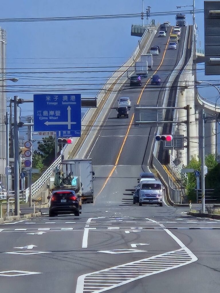 橋を越えて有名な写真が撮れる場所からの江島大橋です。頑張って自転車で橋を越えてきてよかった。