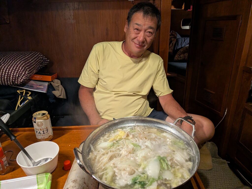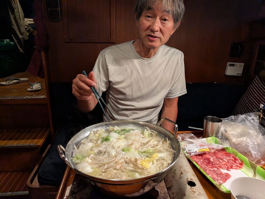 涼しくなったのでお鍋です。Sさんは明日神戸に帰ります。