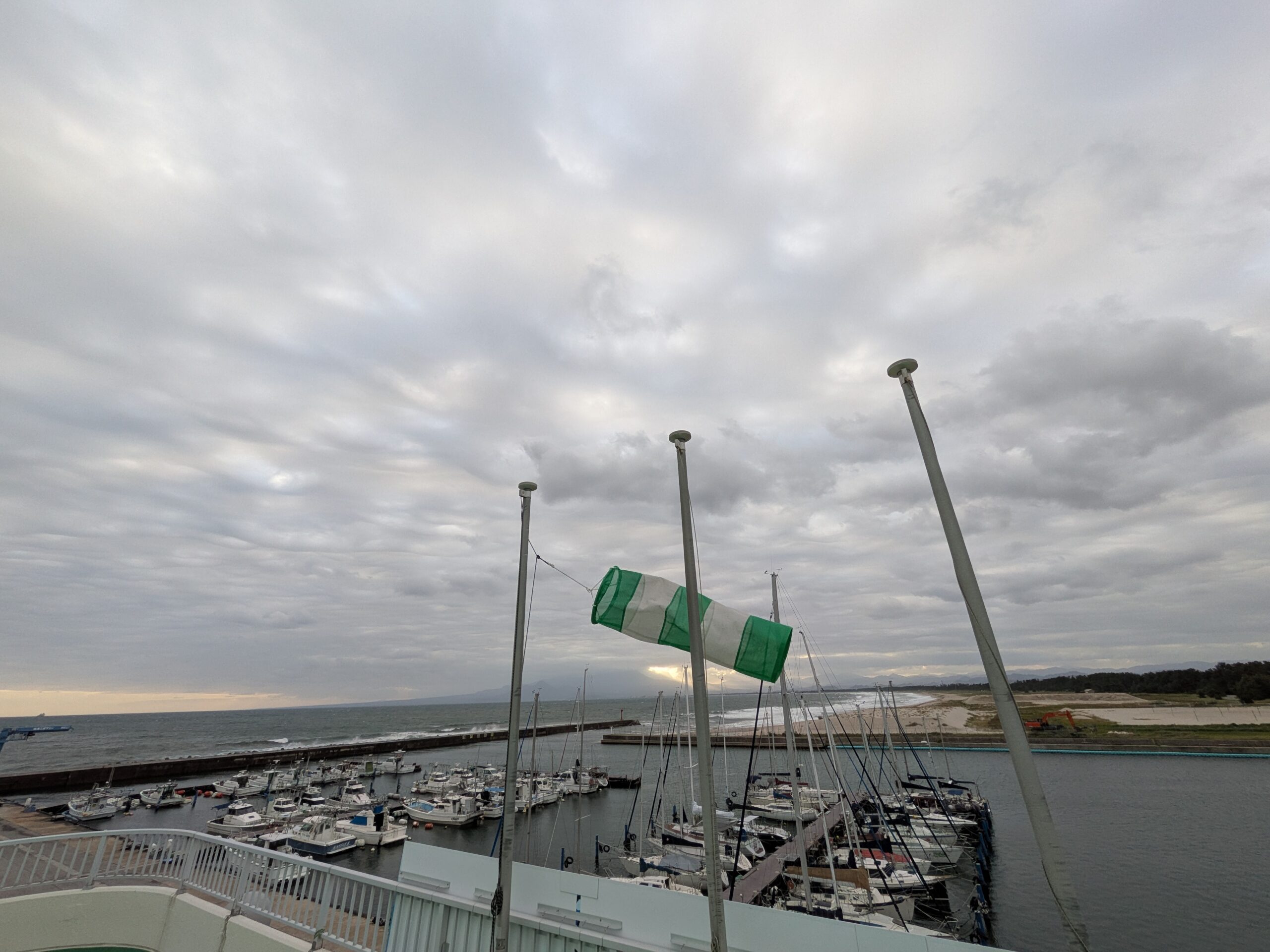 境港公共マリーナ6日目、台風22号の影響であと2日は滞在することになりそうです。昨夜から強風が続いていますが、朝から天気が良いので転車で江島大橋に行きました。橋を越えると島根県の松江市に入り市バスで松江城まで行くことができました。