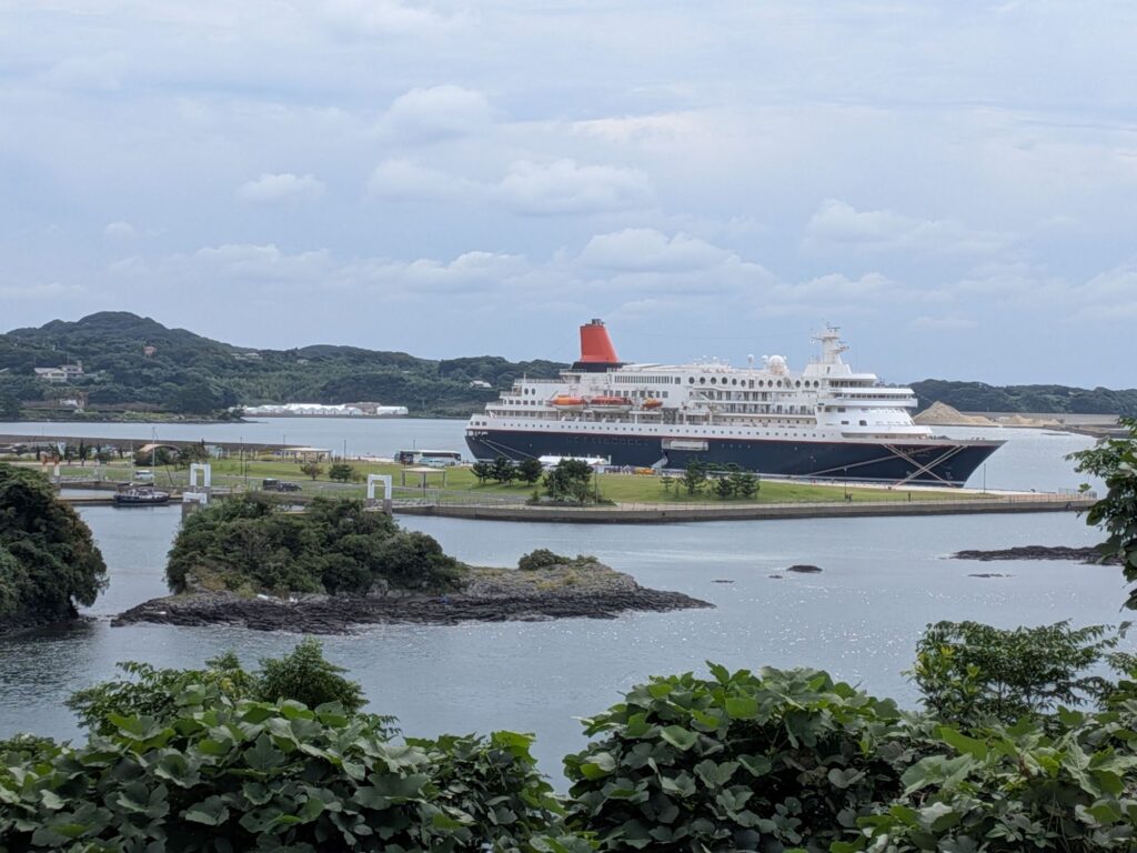 郷ノ浦港5日目です。今日も風が強い予報で出航できそうにありません。朝からにっぽん丸が入港してきました。入港を見てから鬼の足跡という観光地に行きました。