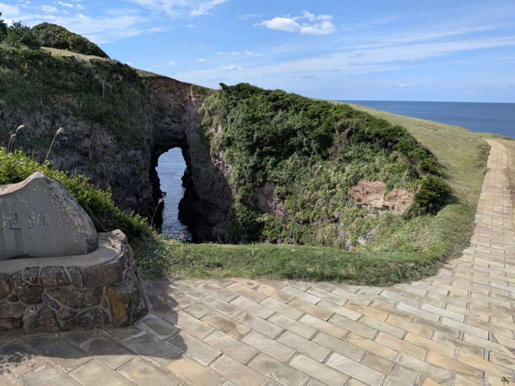 鬼の足跡です。写真では伝わらないですが縦穴(足跡)は深く大迫力でした、穴の上も歩くことができます。柵もなくびびりました。おすすめです。