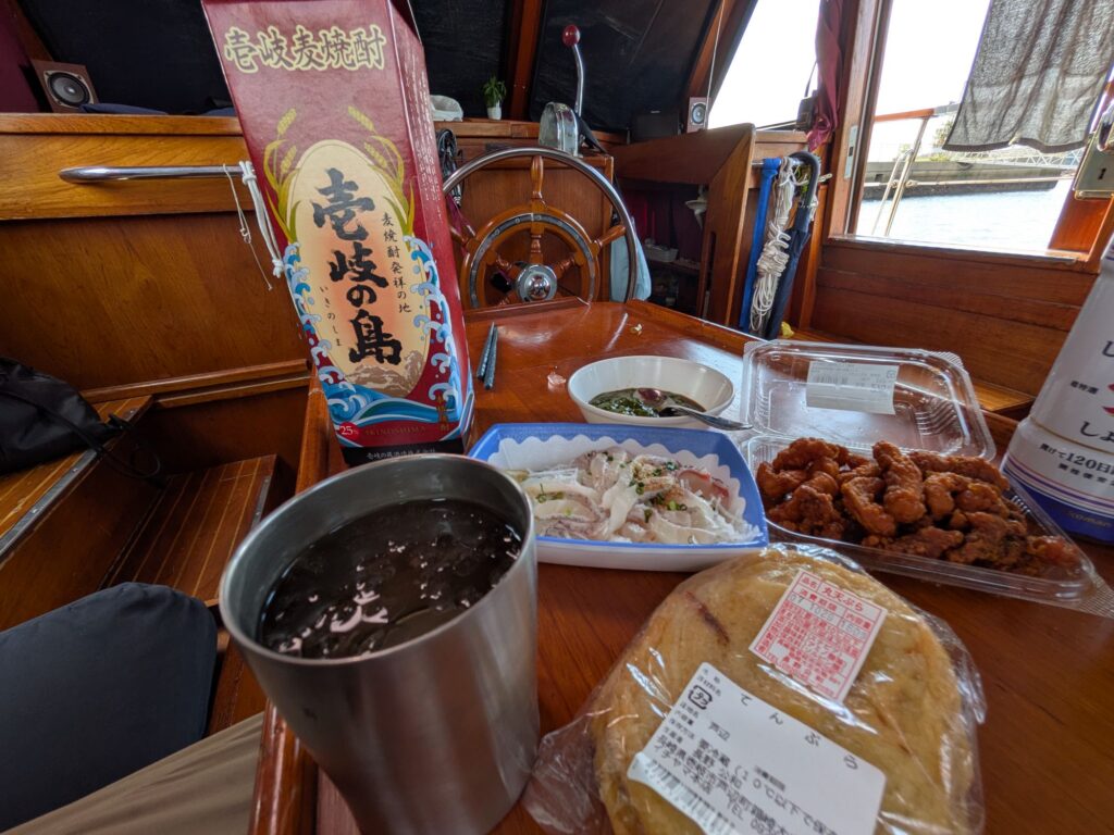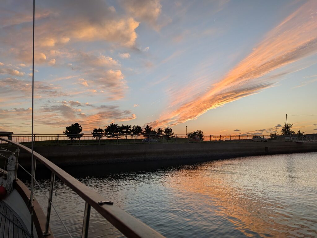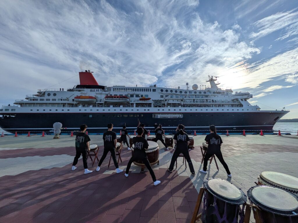 太鼓の音がするので外に出たらにっぽん丸が出航するところでした。太鼓の音に感動。