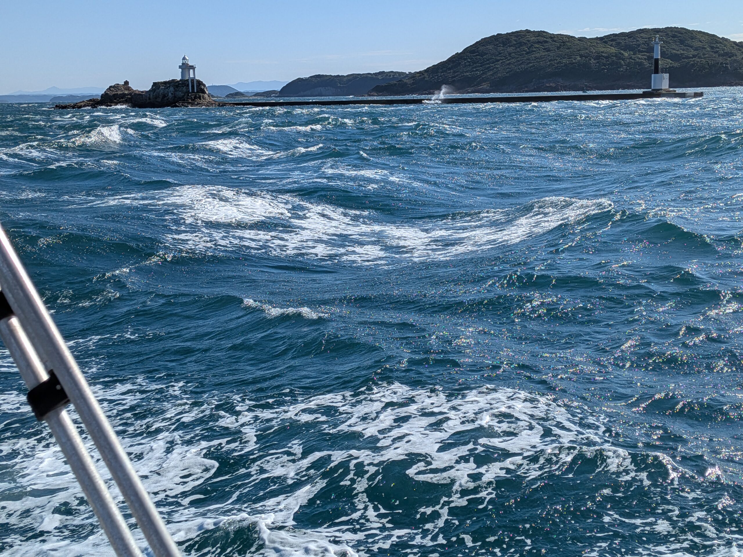 この先3日間はそこそこ良い天気の予測だったので五島列島に向う計画でしたが、朝からWindyをチェックすると強風に変わっていました、残念。郷ノ浦港に留まるか悩みましたが、近くの平戸港に向いました。予報通り追い風10m/sうねりは0.5mですが波長が短くローリング、平戸の瀬戸は逆潮でさらに荒れていました。まあこの程度ならオートパイロットで走れるかと、24海里4時間半でした。明日は平戸港で花火大会があるようで、桟橋が使えません、他に係留する場所なく、長崎港に向かいます。