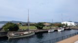 平戸港の入江です。外は平戸瀬戸で潮が4ノット超で流れています。桟橋にヨット泊まっているのわかりますか?