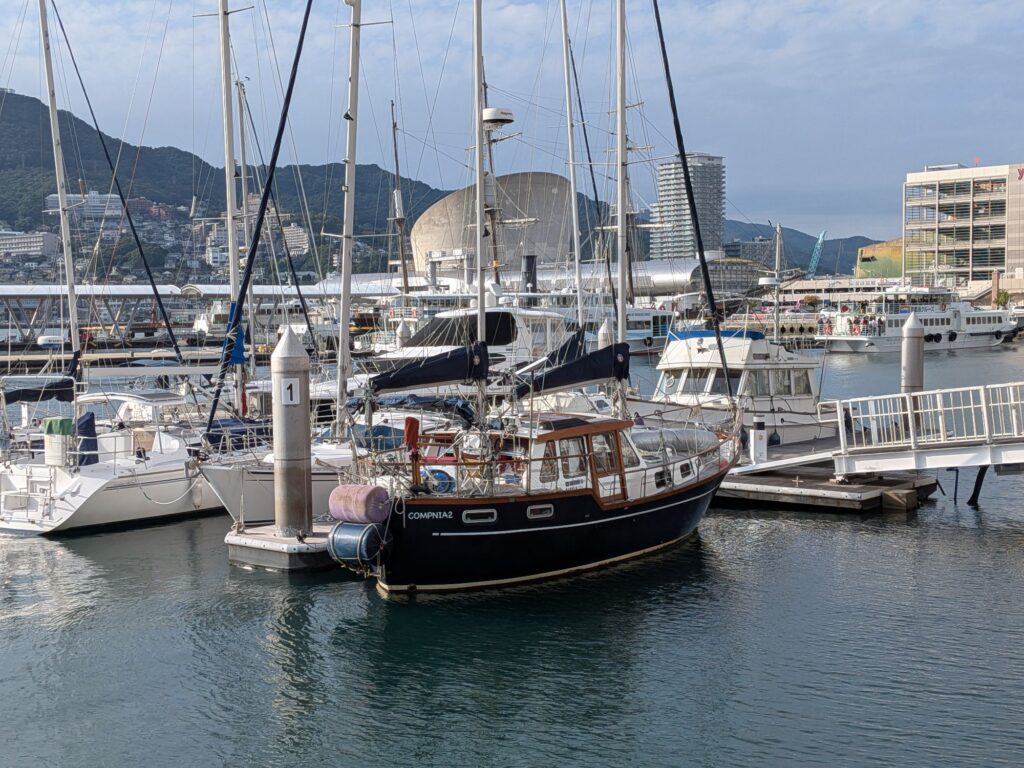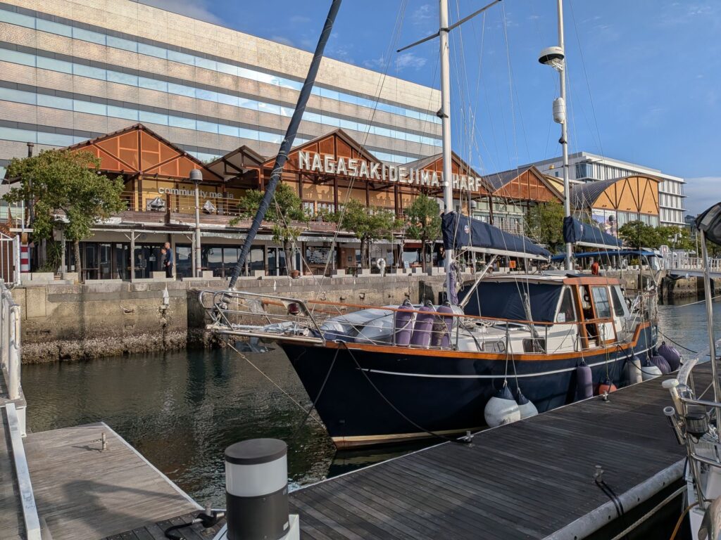 長崎出島ハーバーです。長崎ワーフの目の前。陸電,水はありますがシャワー無し。観光船や連絡船が多く、引波でけっこう揺れます。