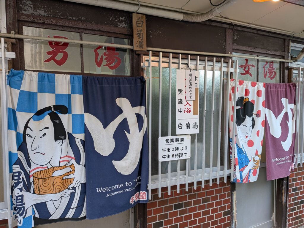 菊水湯。タイル張りの湯舟、昭和でした。自転車で10分、400円。