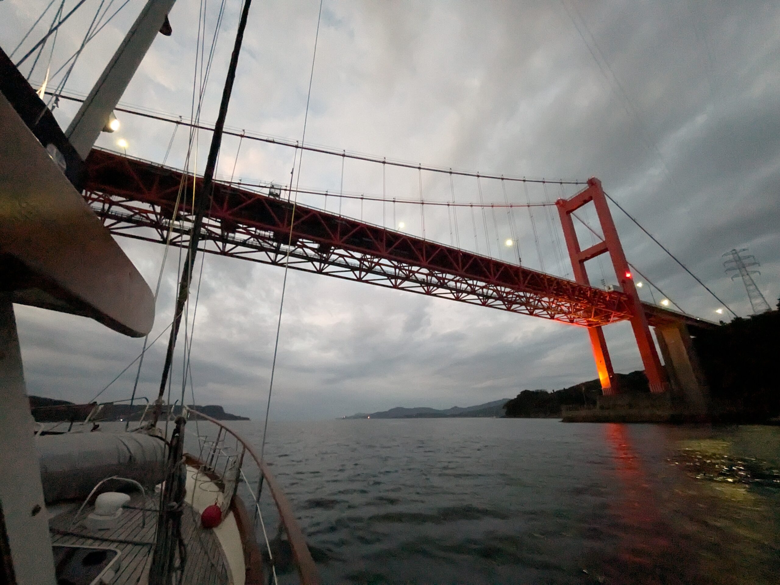 平戸瀬戸の潮止まりに合わせて薄暗い中、6:00に出航、平戸大橋を潜って久しぶりに穏やかな風、内海の静かな海を走って、長崎港の奥の長崎出島ハーバーに15:00到着。50海里9時間の航海でした。当初、長崎サンセットマリーナに行く予定でしたがビジターがいっぱい、27日から予約を入れていた出島マリーナに変更しました。ここで暫くのんびりします。