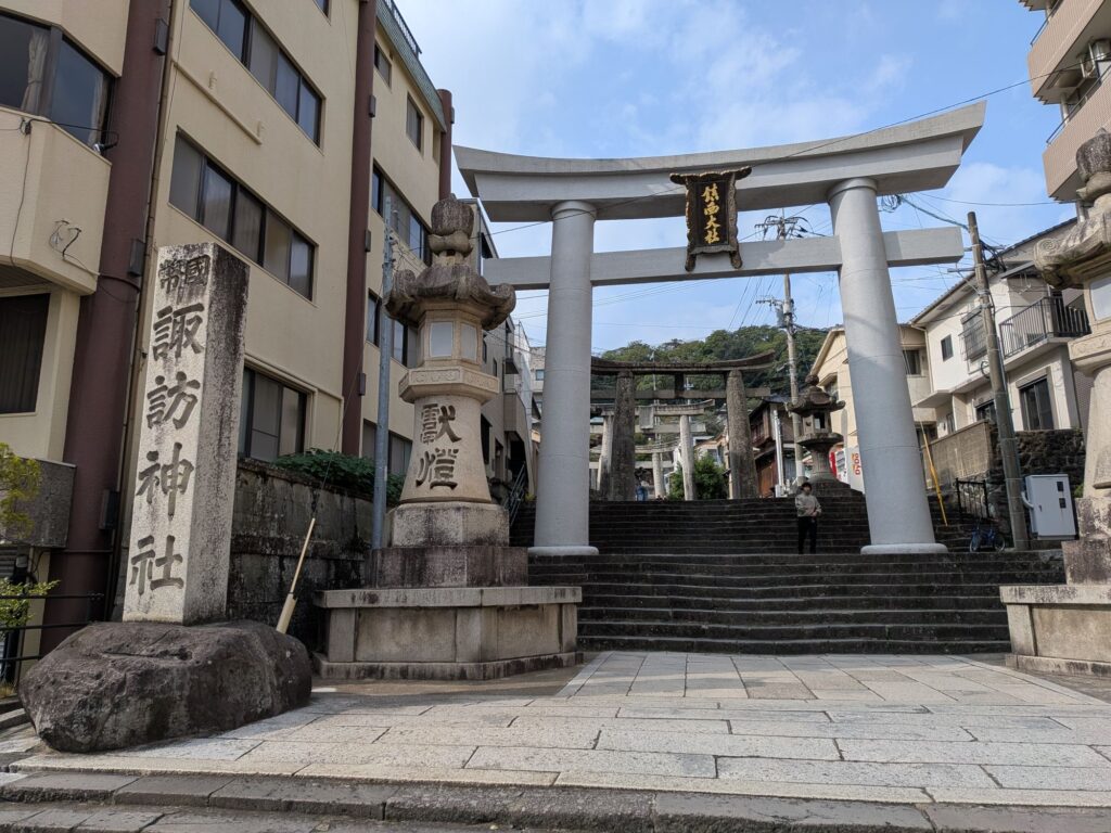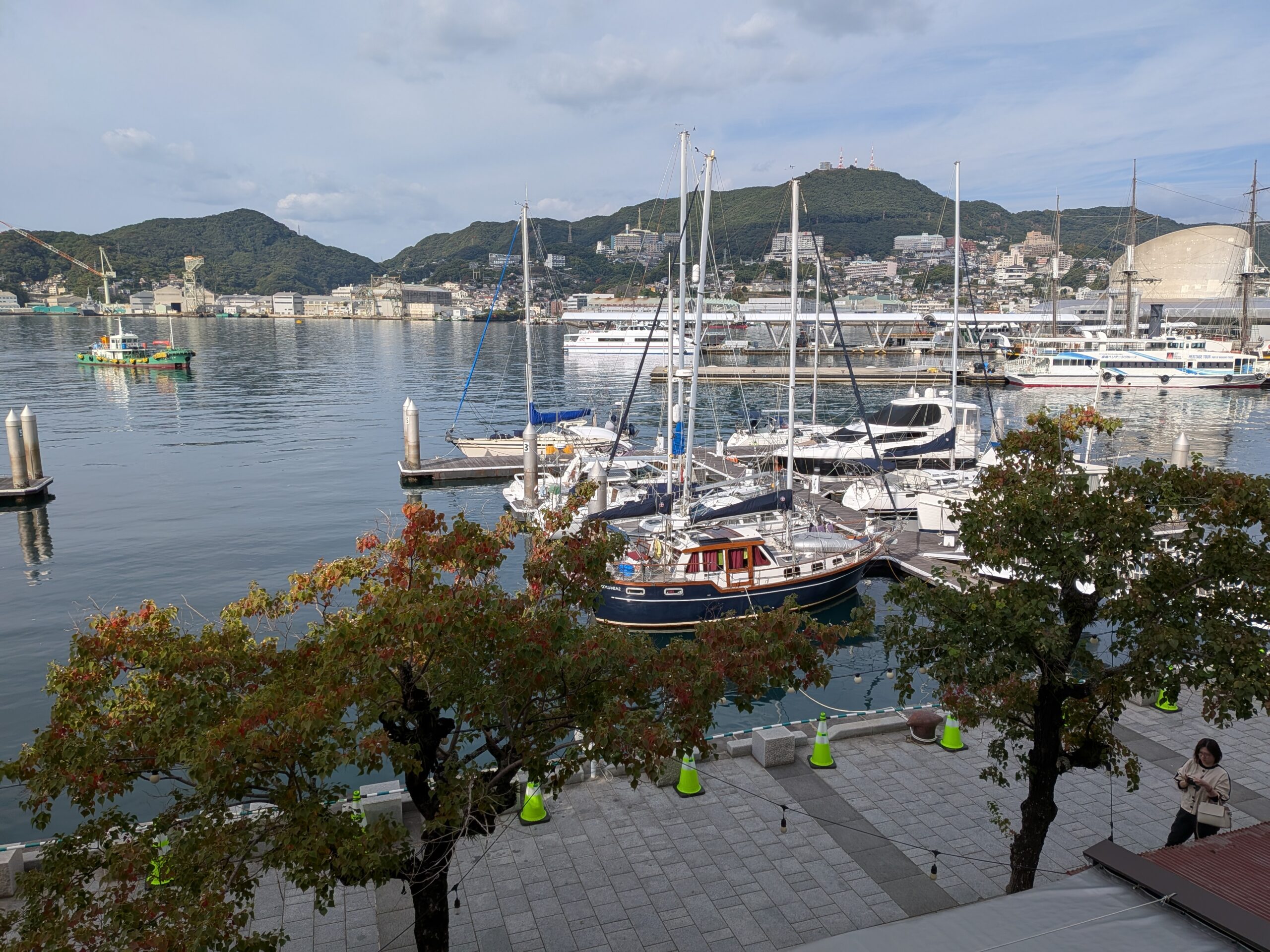 2025/11/02 長崎出島ハーバー(9) Yacht 2025.11.02 長崎出島ハーバー9日目てす。ハーバーの並木も少し紅葉してきました。昼間は暖かく半袖で快適、今日は歩いで銭湯へ行く途中にある諏訪神社方に行きました。 長い階段を登りつめた上に諏訪神社がありました。毎年10月初旬に長崎くんちが行われる、古い大きな神社でした。 Loveフェス2日目、若者で盛り上がっていました。写真だけ撮ってすぐ退散。