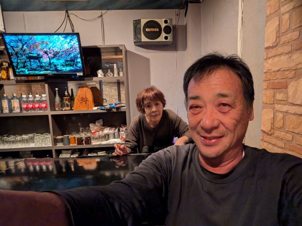 行き足ついてスナック絆です。古仁屋いいですねぇ。メロディーを熱唱。