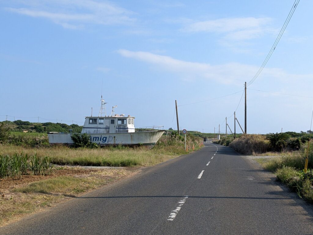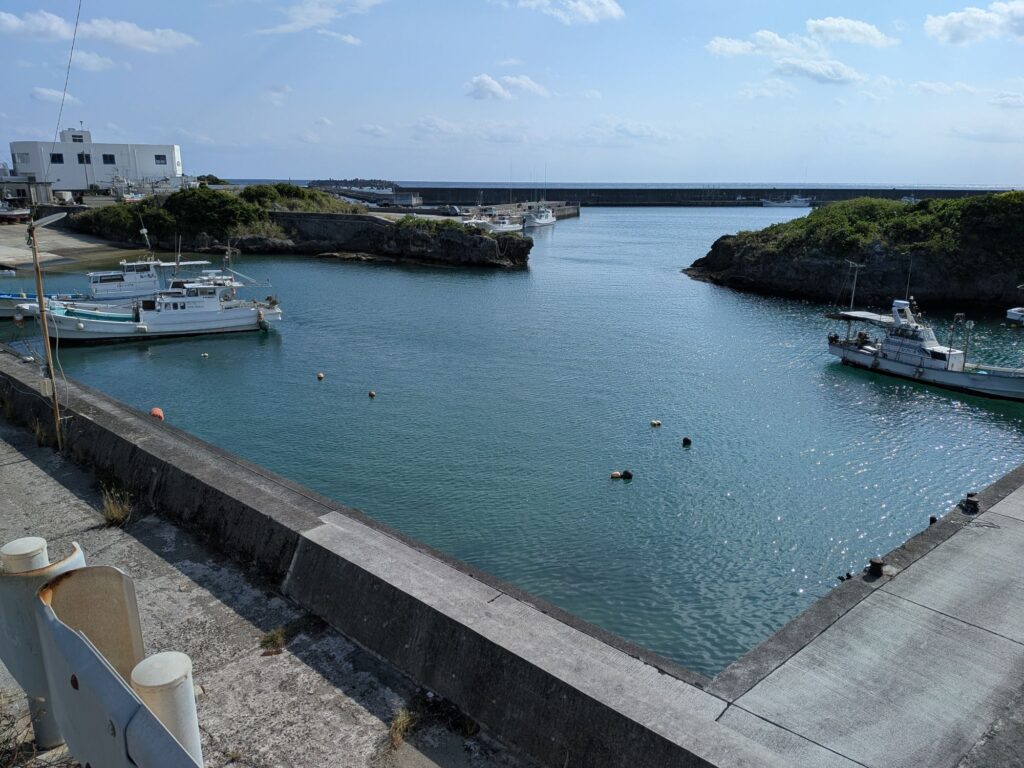 沖永良部島の知名漁港3日目です。朝から北の和泊港に自転車で行きました。海岸線の道を北東に11km、向かい風でしたが平坦で気持ちのいいサイクリングになりました。明日は風が収まり伊是名島の仲田港に向かいます。いよいよ沖縄です。