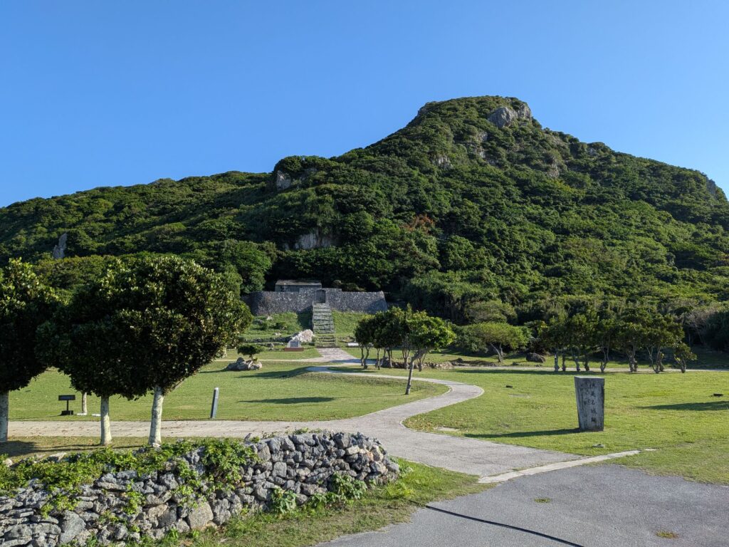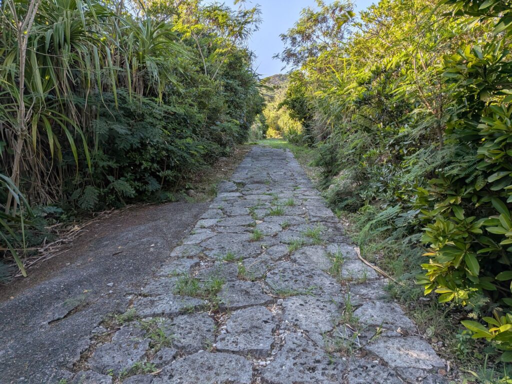 伊是名玉御殿(城跡)まで2km弱、ゆっくりと散歩して来ました。帰りはサムレー道(12.3世紀頃からの古道)を少し歩きました。