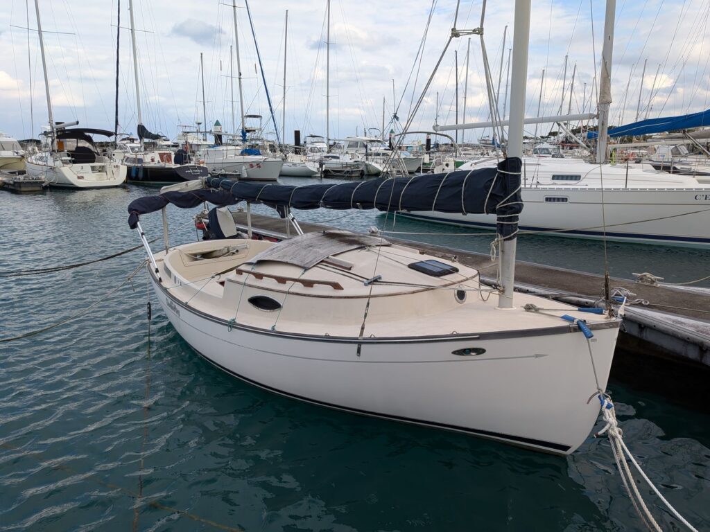 2025/11/25 宜野湾港マリーナ(2) Yacht 2025.11.25 宜野湾港マリーナ2日目です。朝は無風で鏡のような海面でしたが、予想通り北風が上がり強風の一日になりました。明日もやや風が強い予測なんで滞留します。 マリーナに係留されているヨットを見学。こんなヨットもいいかななんて、モーリー17F。 隣の宜野湾トロピカルビーチです、BBQエリアが充実。10月31日で遊泳終了。今日は曇り空で強風で人はまばらでした。 1日中風が強かったなぁ、隣の大きなヨットは米国からのファミリーです。