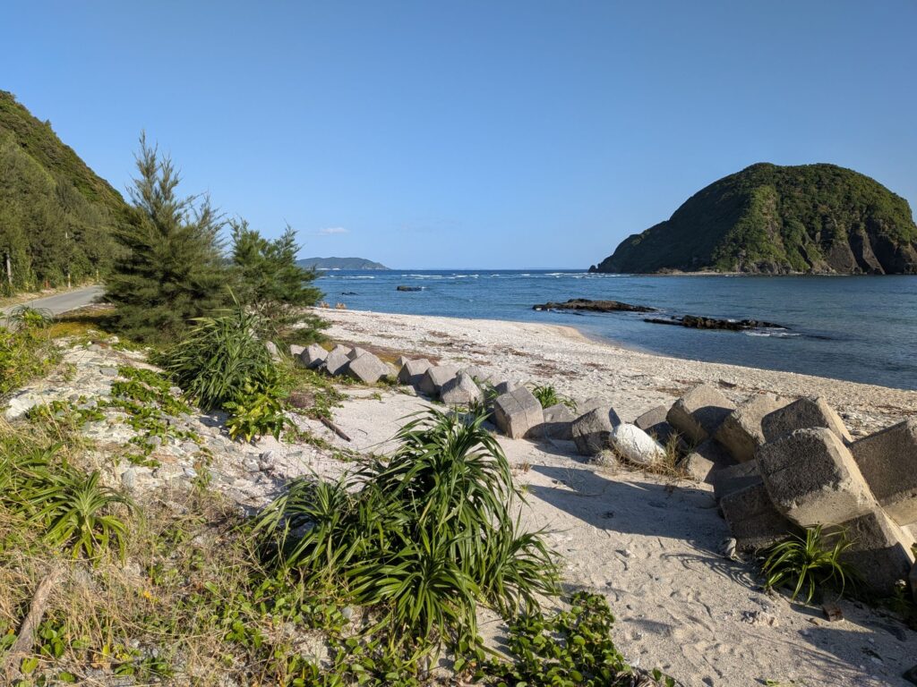 泳げませんか港の隣、珊瑚のかけらの浜です。