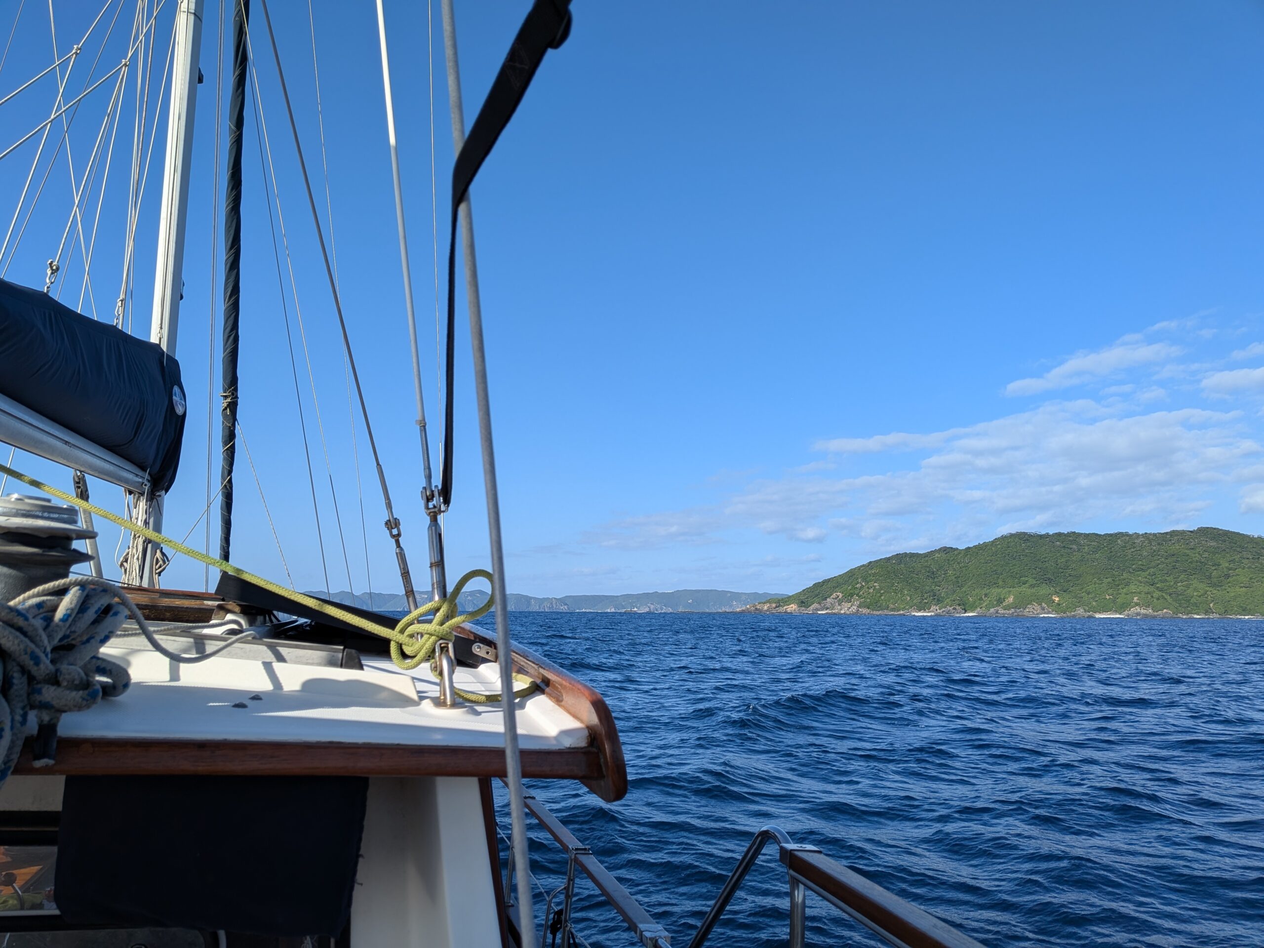 宜野湾港マリーナを6:50に出航。暫くうねり高くローリングで苦労しましたが、うねりも小さくなり追い風4〜5m/sで連れ潮、20℃快晴。10:20に渡嘉敷島の渡嘉敷港に到着。21海里3時間半。近くて快適でした。明日はいよいよ与那原マリーナに向かいます。