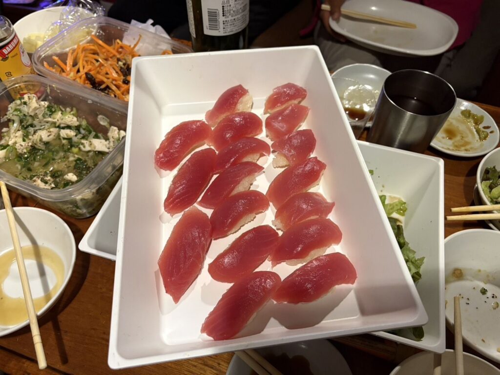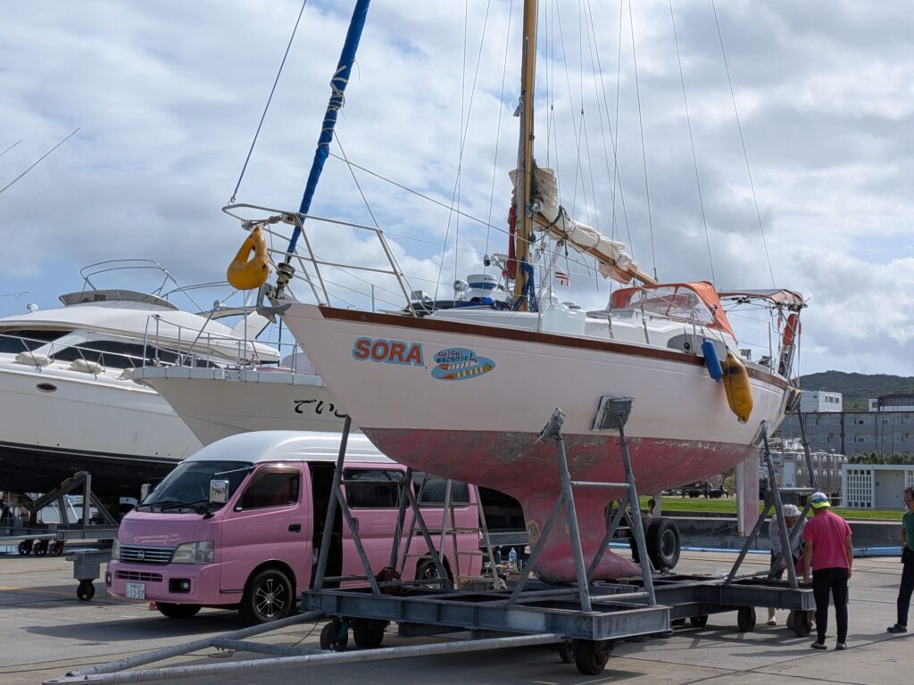 2026/02/28 与那原マリーナ Yacht 2026.02.28 今日は漁港直売店でマグロを買ってヨットで寿司パーティー。大勢集まって楽しいひとときでした。 キハダマグロなど4合握りました。 先日ヤンバルの古民家でお世話になったけんちゃんのヨット。糸満から回航して昨日から上架して船艇塗装中。