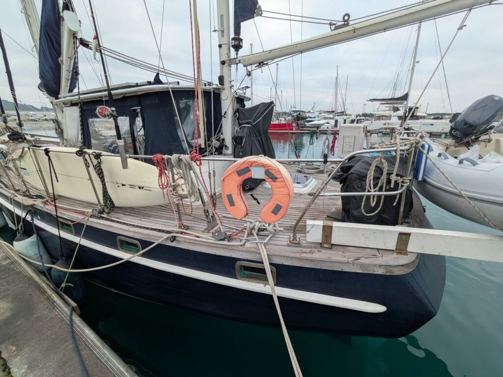 昨日から隣にカナダから来た大きなケッチ。南太平洋、フィリピン、石垣島経由で与那原マリーナ、航海2年目の初老のご夫婦。僕のヨットに似ているけど2倍の大きさです、綺麗ですが船齢40年、今日もバックステーのワイヤーを交換されてました。