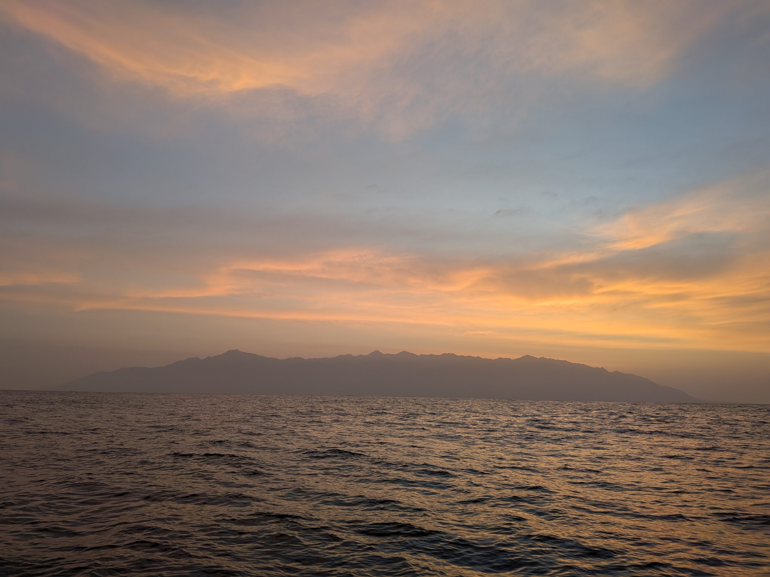 2026/04/06 宮之浦港 Yacht 2026.04.06 加計呂麻島の入江を3:00amに出航して、オーバーナイトで166海里32時間で屋久島の宮之浦港に10:00に到着しました。後半は波も風もおさまり快適でしたが、黒潮も含め複雑な潮流でスピードは出ませんでした。 宮之浦港に係留。静かです。 宮之浦川越しの山並みが美しい。 早速、自転車で5km走って楠川温泉に行きました。少しイオウの匂いがしてツルツル系のいい泉質。久しぶりの温泉は最高です。300円。 地元で有名なお食事処 潮騒さんでカツ丼頂きました。ボリューム満点で旨くて安い。