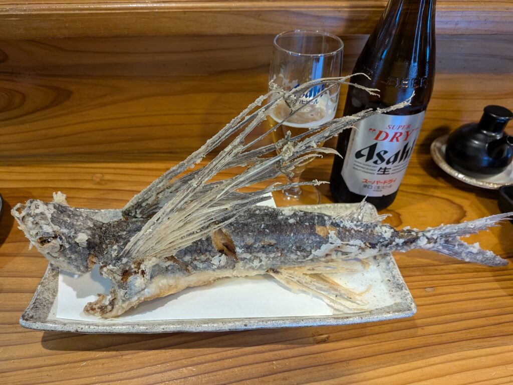 一昨日、せっかくグルメで放送された若大将。トビウオ唐揚げがでかい。