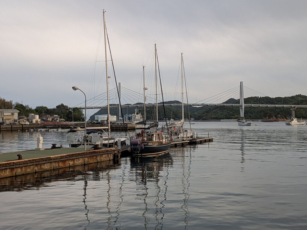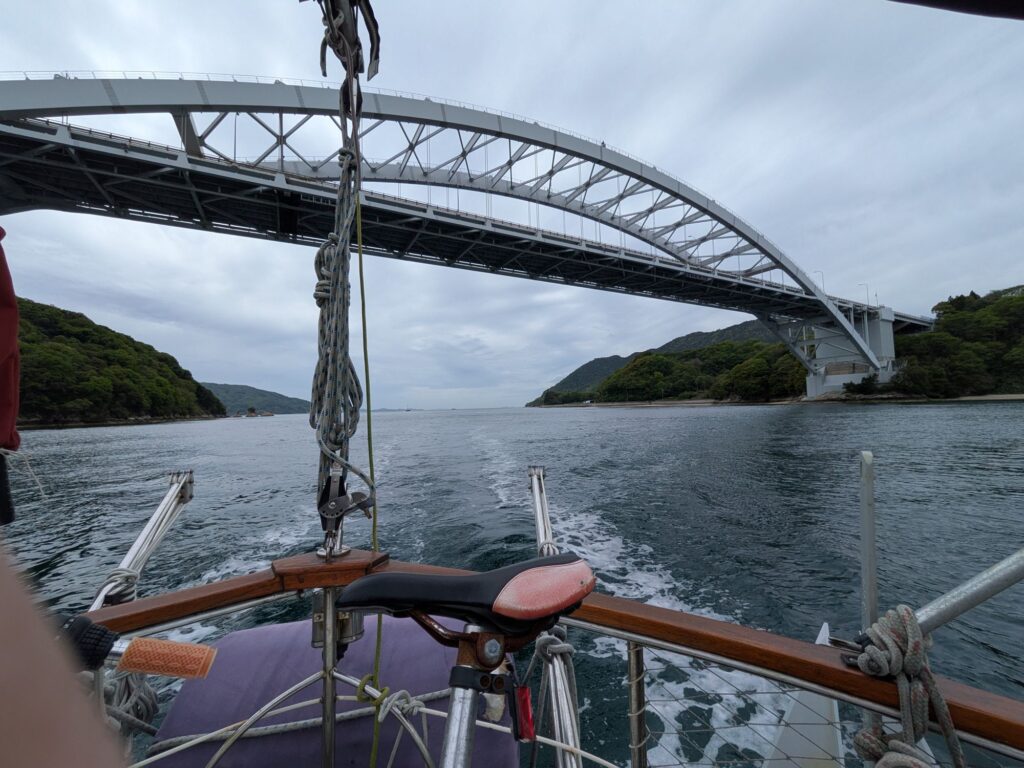 今日は来島海峡を越えて東に向かうルートですがしまなみ海道の島の間を縫って弓削島に向かいました。狭い海峡を進むのは気持ちいいですね。