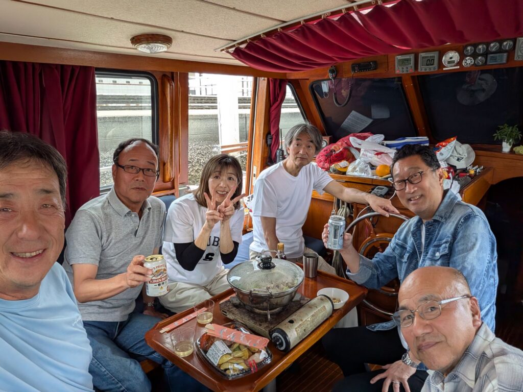 2026/04/29 和歌山マリーナシティ(3) Yacht 2026.04.29 和歌山マリーナシティ3日目です。朝から給水のため給油桟橋に移動して給水して洗濯して乾燥機を回してスーパーオオクワに昼からの宴会食材を買い出しに行きました。 関西の仲間がヨットを訪問してくれて昼飲みしました、 今日はヨットクラブのシャワーを使いました。 明日から天気崩れるようで暫くここで滞在することにしました。